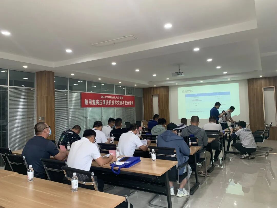 2022年6月1日由BLUESPRING贝森普&Winning Group韦立国际联合举办的“船用超高压清洗机技术交流与安全培训”在我司如期举行。