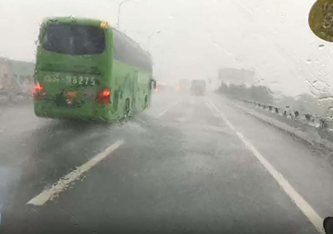 经过了一个晚上的驱车赶路,路上遇到大雨天气依然坚持往前;